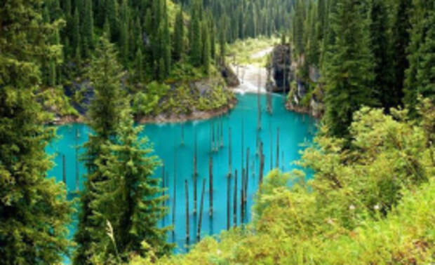 Озеро Каинды (Кайынды), расположенное в горной системе Тянь-Шань на высоте около 1900 метров над уровнем моря, - природная достопримечательность Казахстана. Оно было образовано в январе 1911 года после сильнейшего землетрясения, в результате которого произошел горный обвал, перегородивший реку - и долина наполнилась водой.